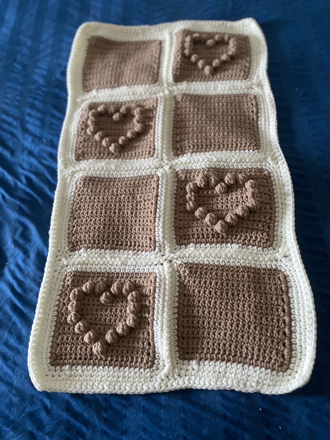 Made with granny square, beige and white. 74 x 42 cm.